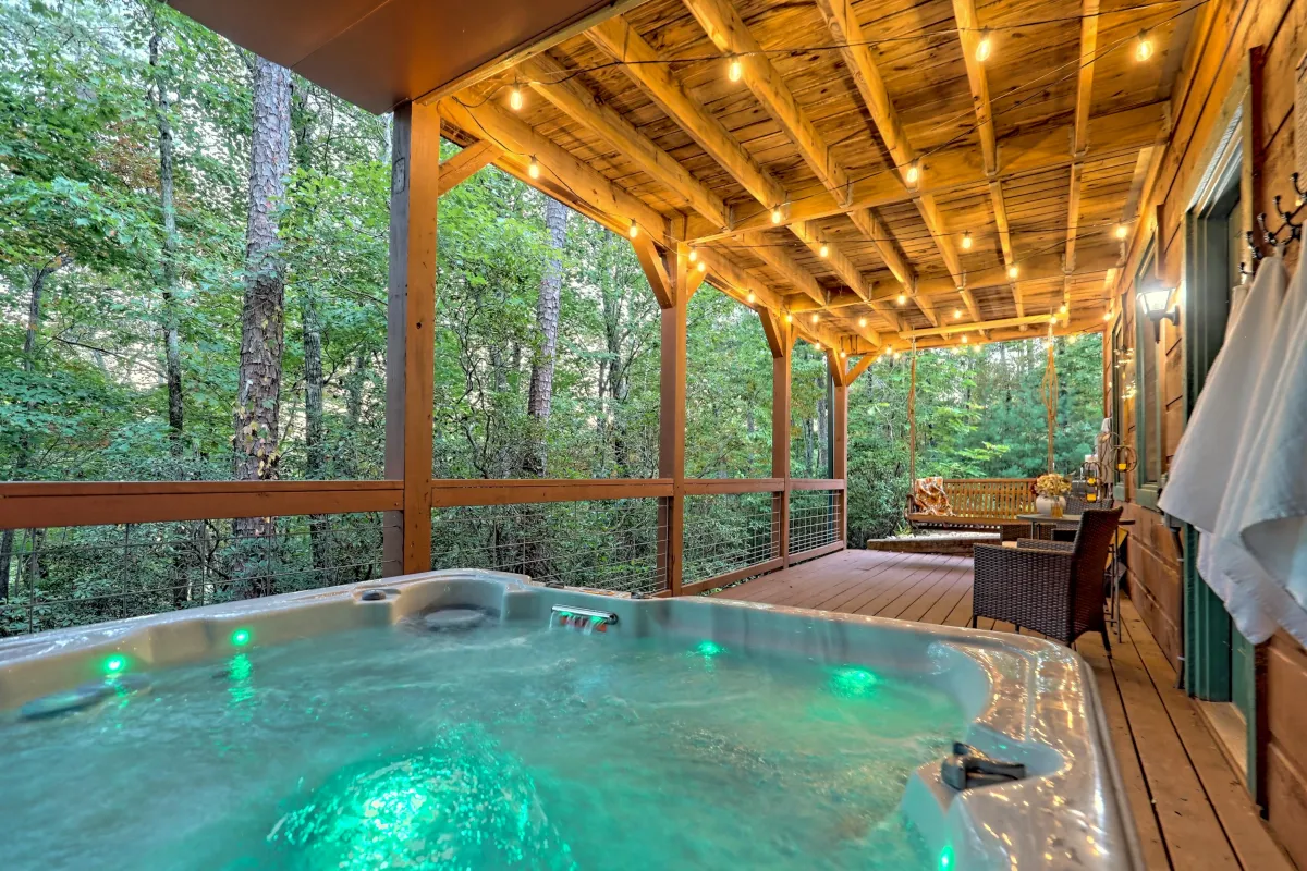 The hot tub is in a private setting and is perfect after a day of hiking.